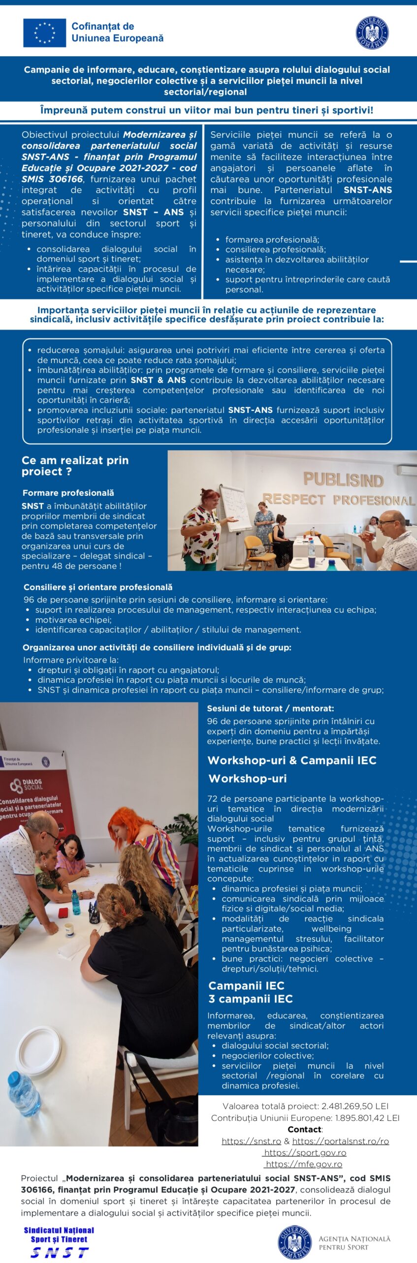 Sindicatul Național Sport și Tineret: Importanța serviciilor pieței muncii în relație cu acțiunile de reprezentare sindicală