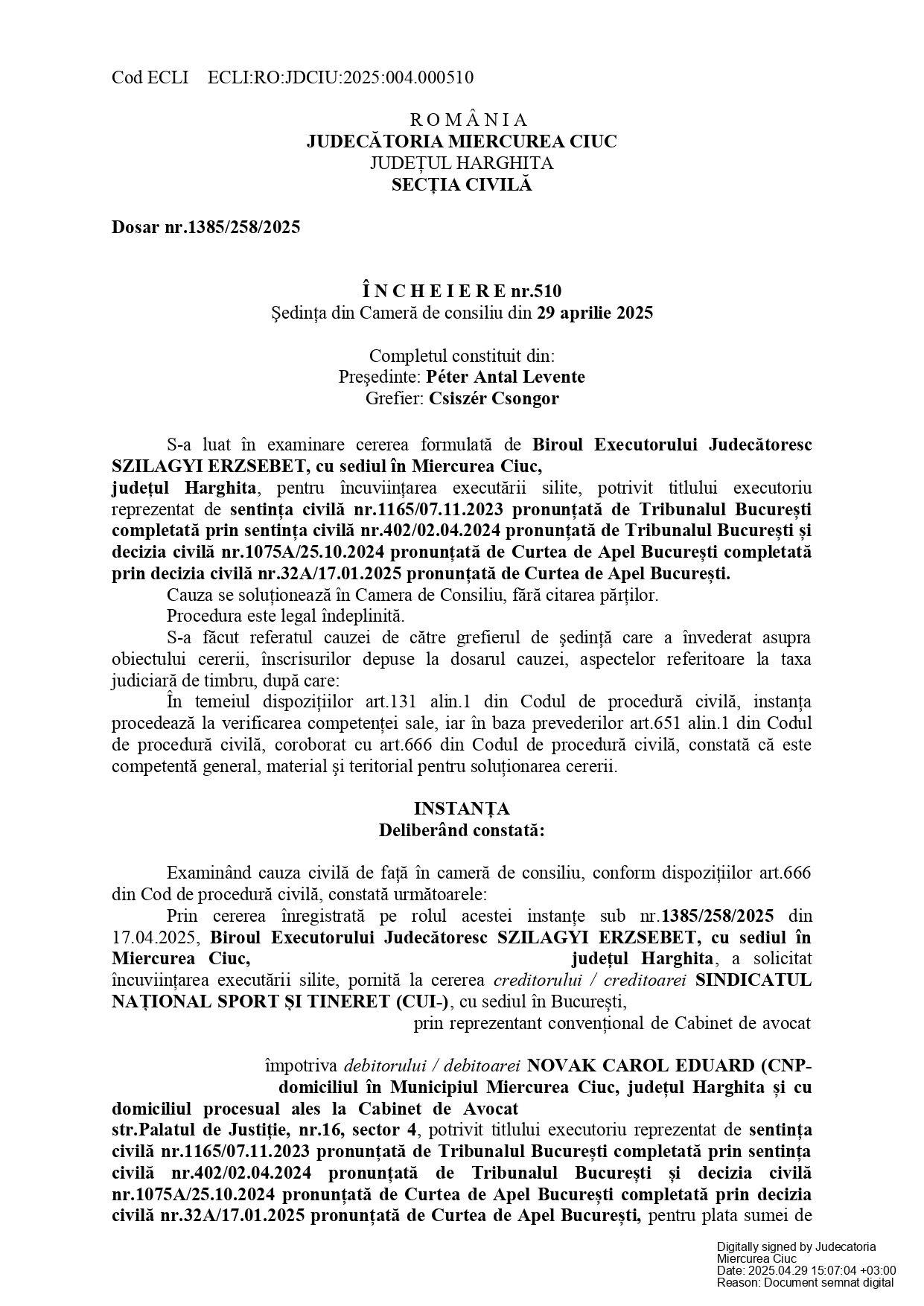 Cu toate că se laudă cu „7 ani de drept” în CV, Novak a încercat să se eschiveze: a depus în dosar un CNP greșit. O greșeală „inocentă”? Sau o metodă de amânare bine cunoscută în zona contravențiilor și infracțiunilor mărunte? Organele s-au încurcat puțin, dar SNST a găsit CNP-ul corect și a dus executarea la capăt.