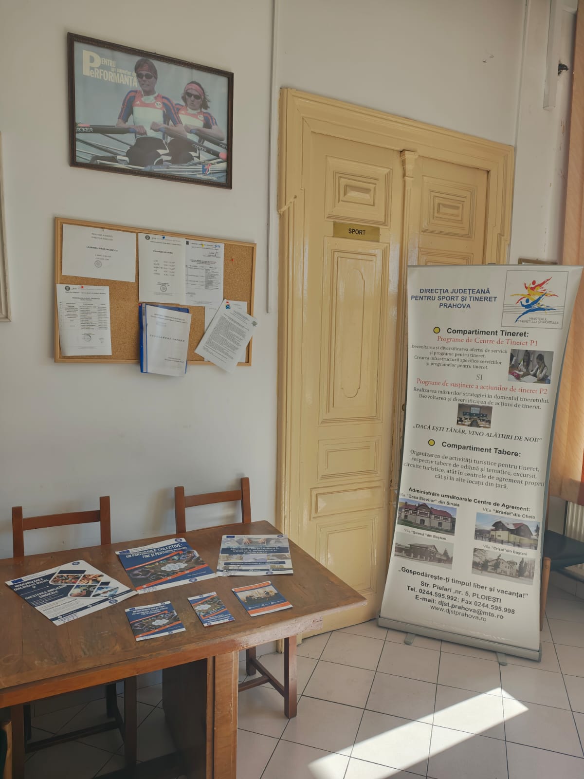 La Direcția Județeană pentru Sport și Tineret Prahova, proiectul „Modernizarea și consolidarea parteneriatului social” este activ și vizibil. Colegii de aici au afișat materialele informative ale proiectului – afișe, pliante, broșuri și postere – în zone frecventate: la intrare, la avizier și în birouri, facilitând accesul tuturor angajaților la informațiile relevante.