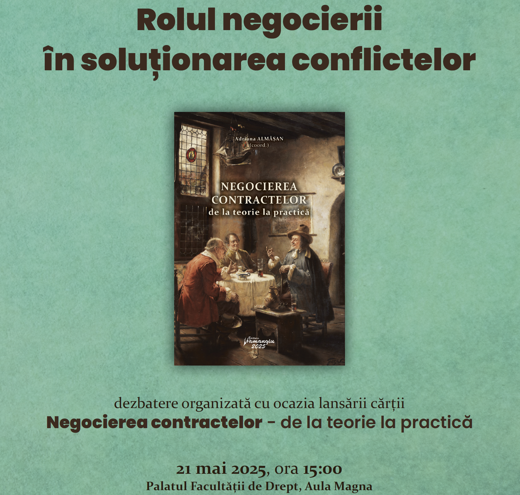 “Rolul negocierii în soluționarea conflictelor”, dezbatere organizată de Facultatea de Drept a Universității București cu ocazia lansării cărții ”Negocierea contractelor – de la teorie la practică” – Programul evenimentului