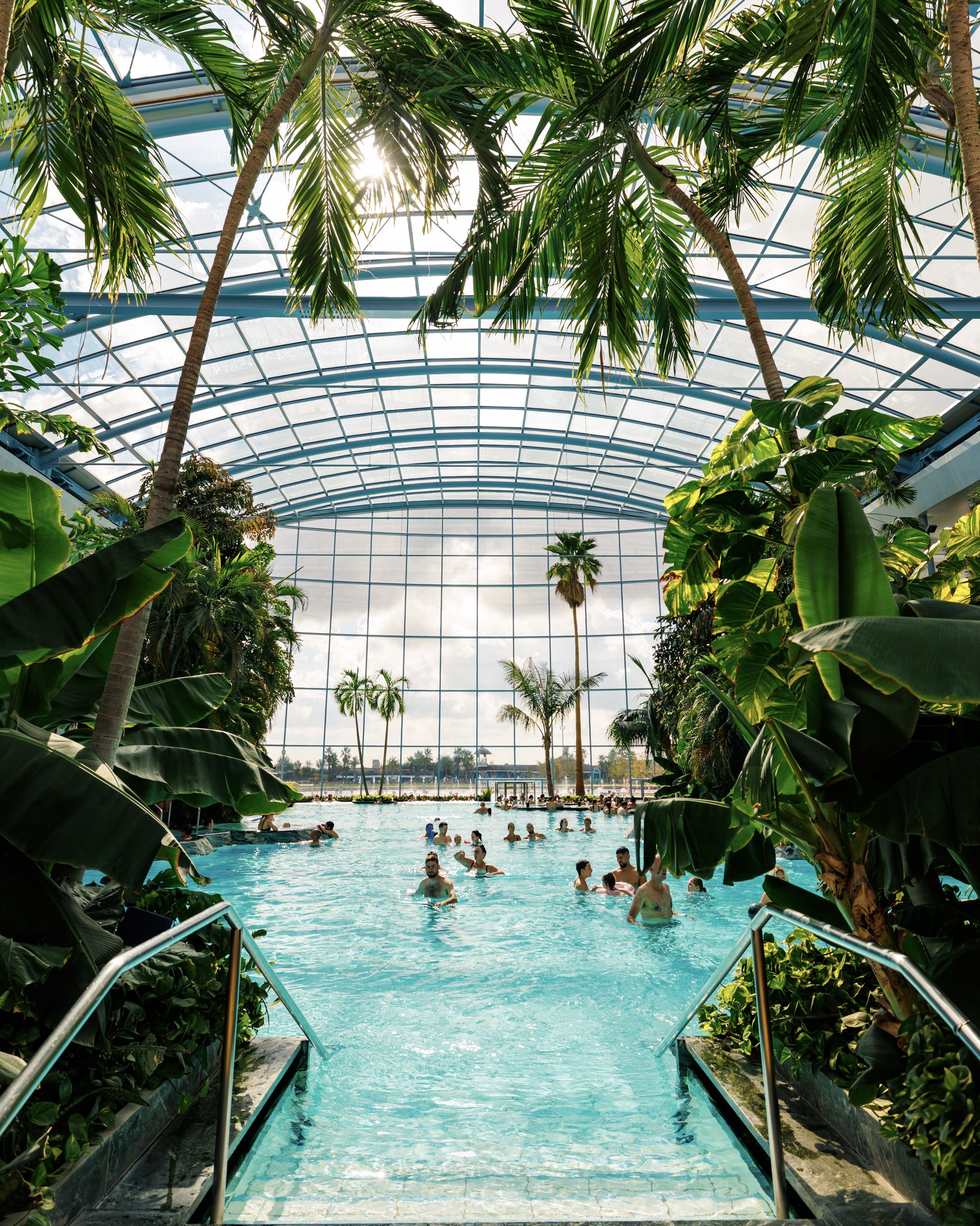 Therme București, cel mai mare complex de relaxare, wellness și entertainment cu ape termale din Europa, construit greenfield. Amplasat la 10 minute de oraș, Therme Bucuresti este deschis tot timpul anului, 7 zile din 7. Therme Bucuresti cuprinde 3 zone distincte, cu facilități variate care creează atmosfera unei vacanțe tropicale. Complexul are o suprafață de peste 29 de mii de metri pătrați, 9 piscine cu apă termală indoor și outdoor, cocktail pool bars indoor și outdoor, 6 saune tematice uscate, 4 saune umede, jacuzzi, 15 tobogane acvatice, 3 restaurante. Ambianța tropicală este completată de cei 1,400 de palmieri și speciile unicat de plante exotice. Descoperă Therme București: