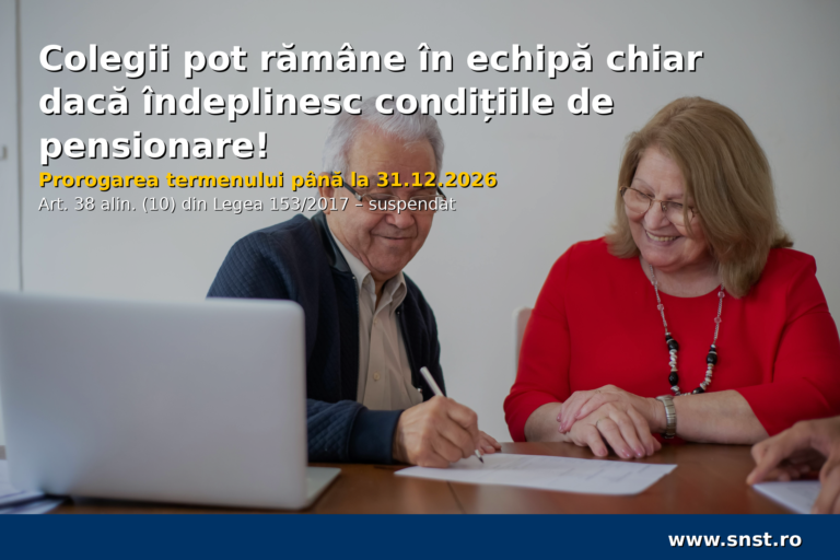Personalul contractual plătit din fonduri publice care îndeplinește condițiile de pensionare și pentru care a fost emisă decizia de pensionare își poate continua activitatea până la 31.12.2026, conform acestei prorogări.