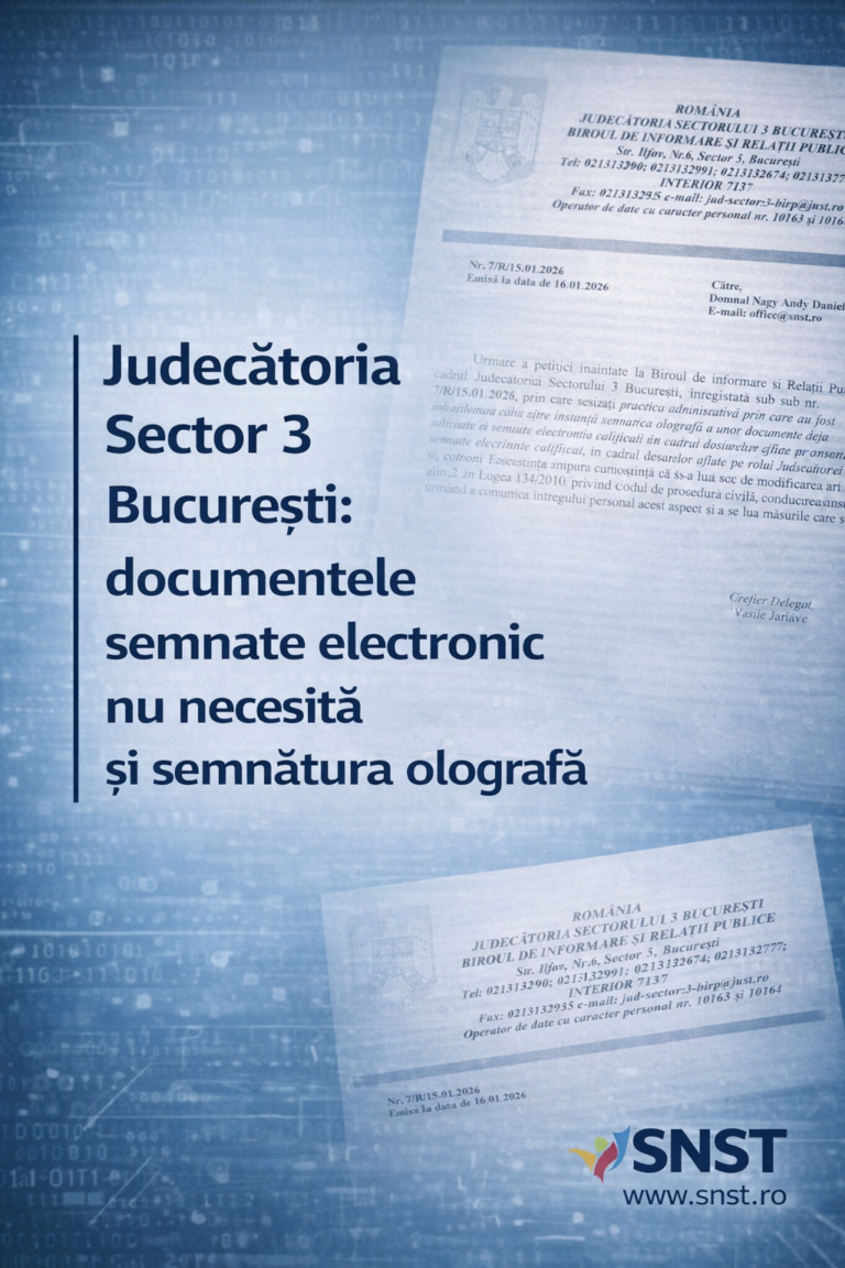 Un pas important pentru respectarea semnăturii electronice și pentru simplificarea procedurilor judiciare. În urma sesizării formulate de Sindicatul Național Sport și Tineret, Judecătoria Sectorului 3