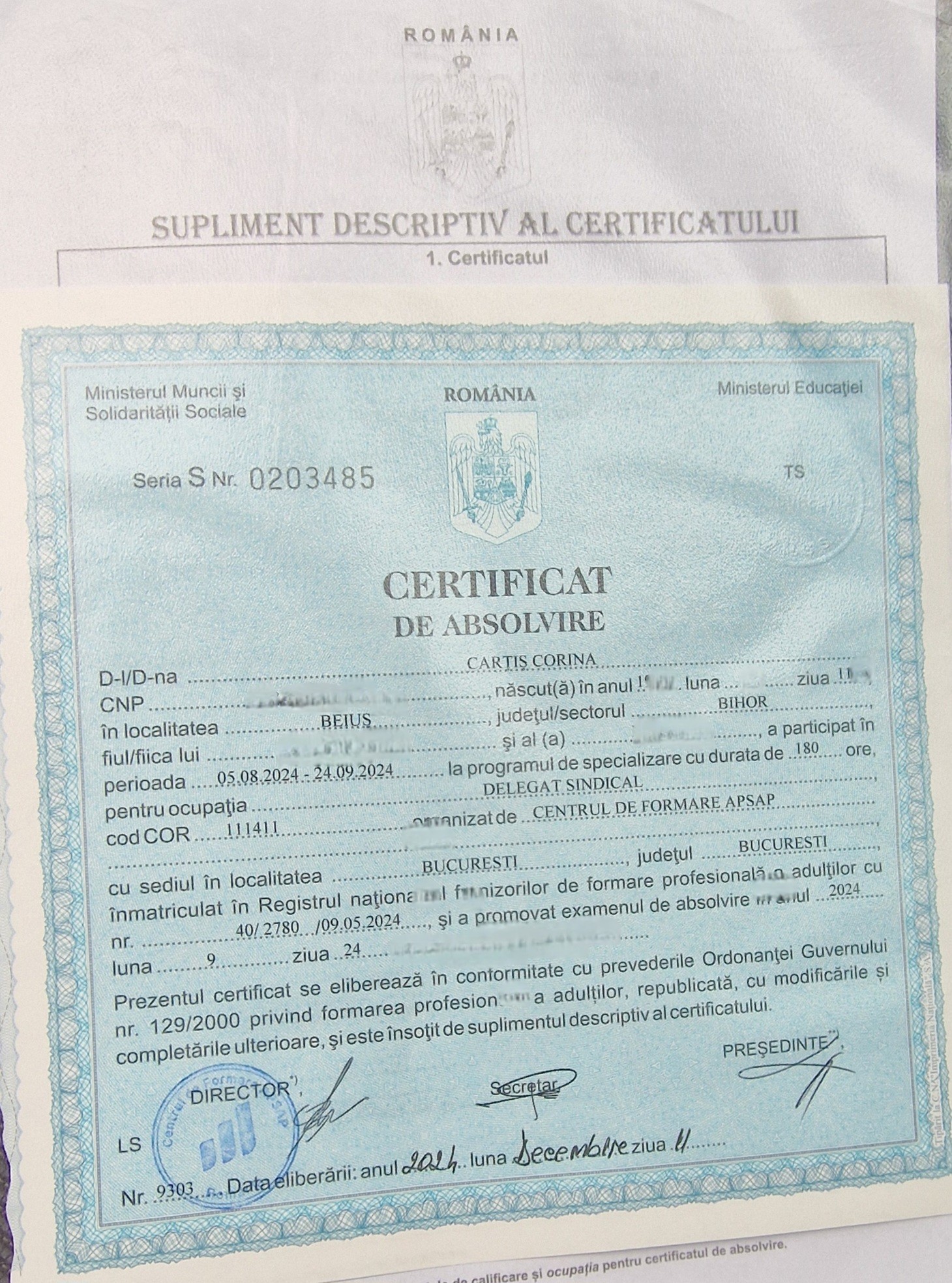 Participarea la proiectele derulate de SNST, inclusiv la modulul de formare profesională din cadrul programului de formare cu fonduri europene, a fost un succes remarcabil, doamna Cârțiș absolvind cursul cu nota 10. Aceasta reușită reflectă seriozitatea și implicarea de care dă dovadă în profesia sa.