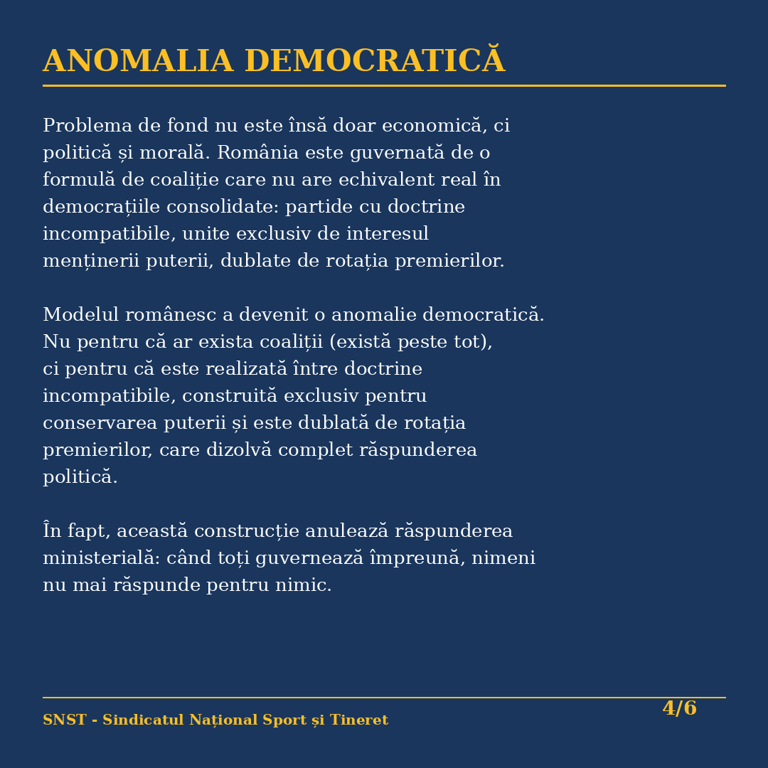 „Stabilitatea” devine o etichetă care ascunde blocarea alternativelor și diluarea răspunderii.