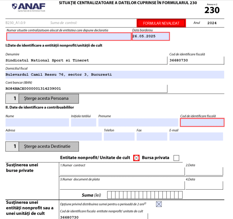 Astăzi, 26 mai 2025, este ultima zi în care pot fi transmise către ANAF formularele 230 pentru redirecționarea a 3,5% din impozitul pe venit către organizația noastră – o acțiune simplă, fără costuri pentru membru, dar cu efect direct în sprijinul membrilor grupei dumneavoastră!